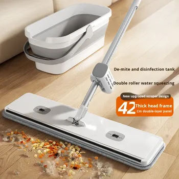 מגב שטוח גדול ללא שטיפה ידנית לשימוש ביתי, מגב בד מסתובב דו-שימושי וניקוי רצפות לאדם עצל